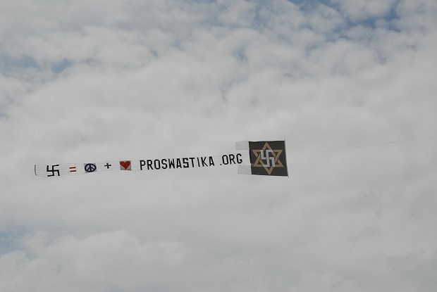 A few days before Swastika Day, an ad on a big screen on Times Square in New York City.